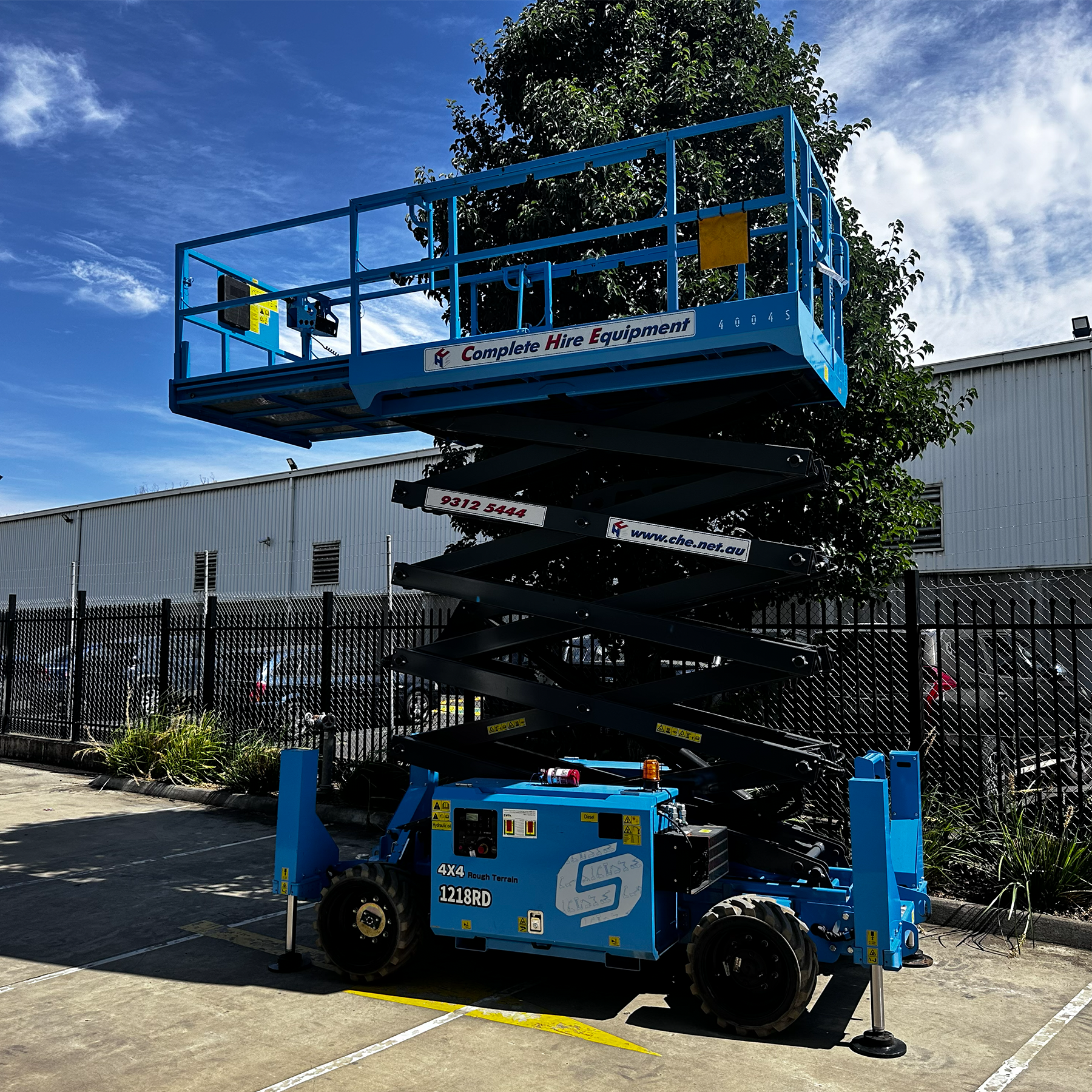 The 40ft Rough Terrain Diesel Scissor Lift delivers high-capacity elevated access for demanding outdoor worksites. Designed for uneven ground, it features four-wheel drive, rugged terrain tyres and a spacious platform for operators, tools and materials. Ideal for construction, structural works and large-scale installations where height, stability and performance are critical.